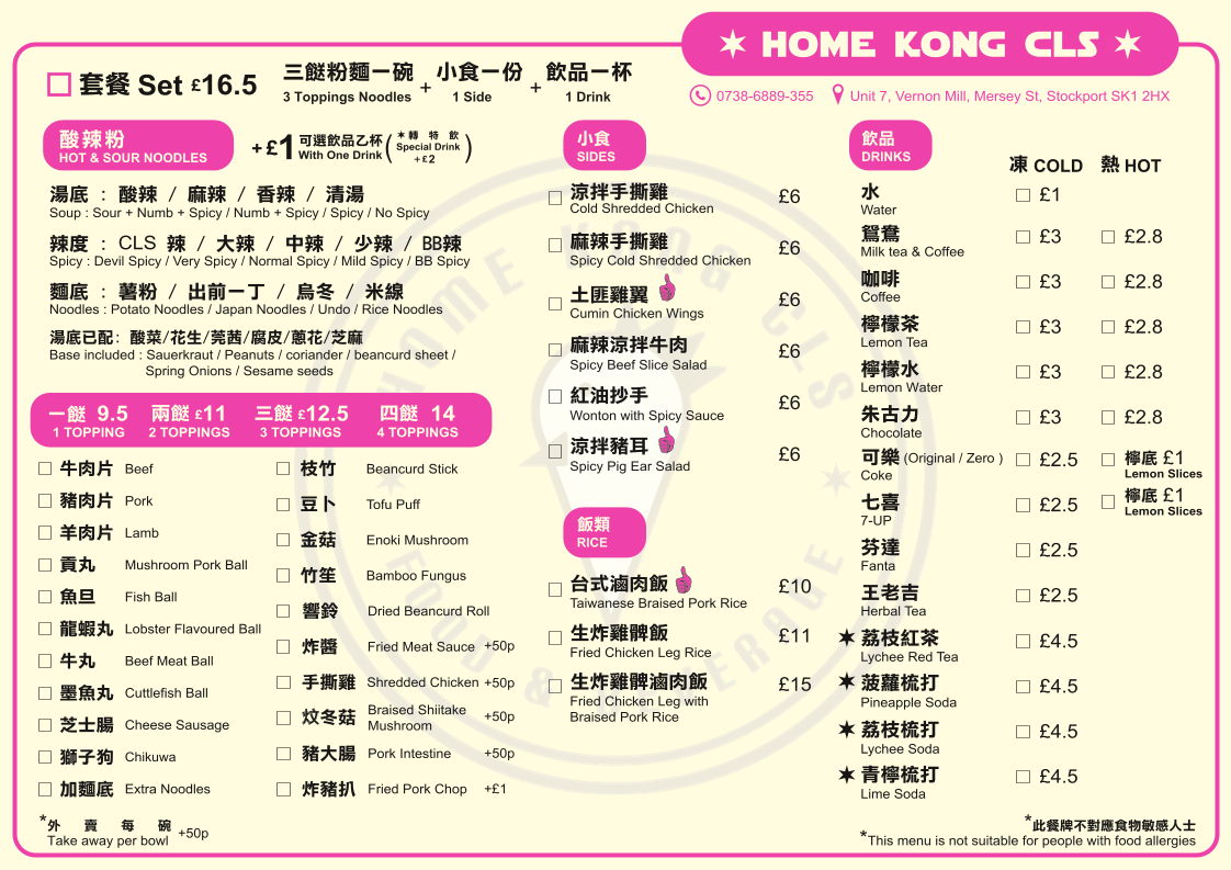 Home Kong CLS Menu